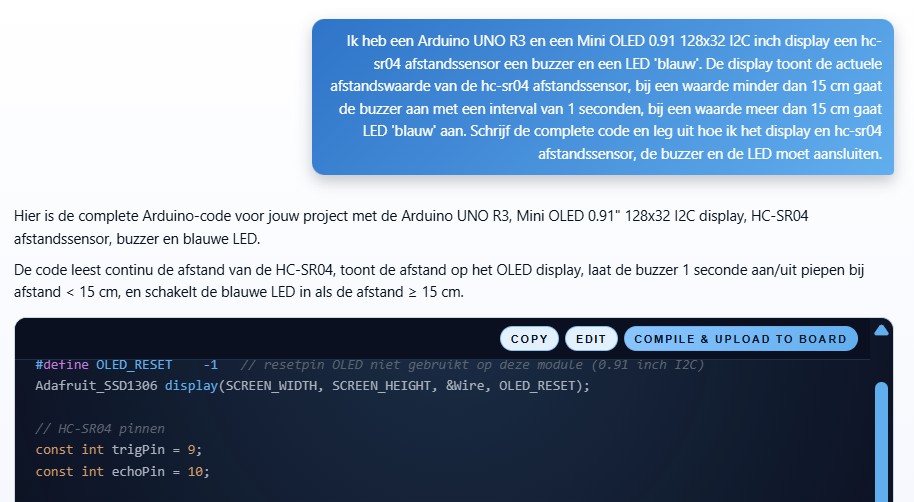 Ik heb CODEY gevraagd om de complete code te schrijven én mij te vertellen hoe ik de componenten moet aansluiten.