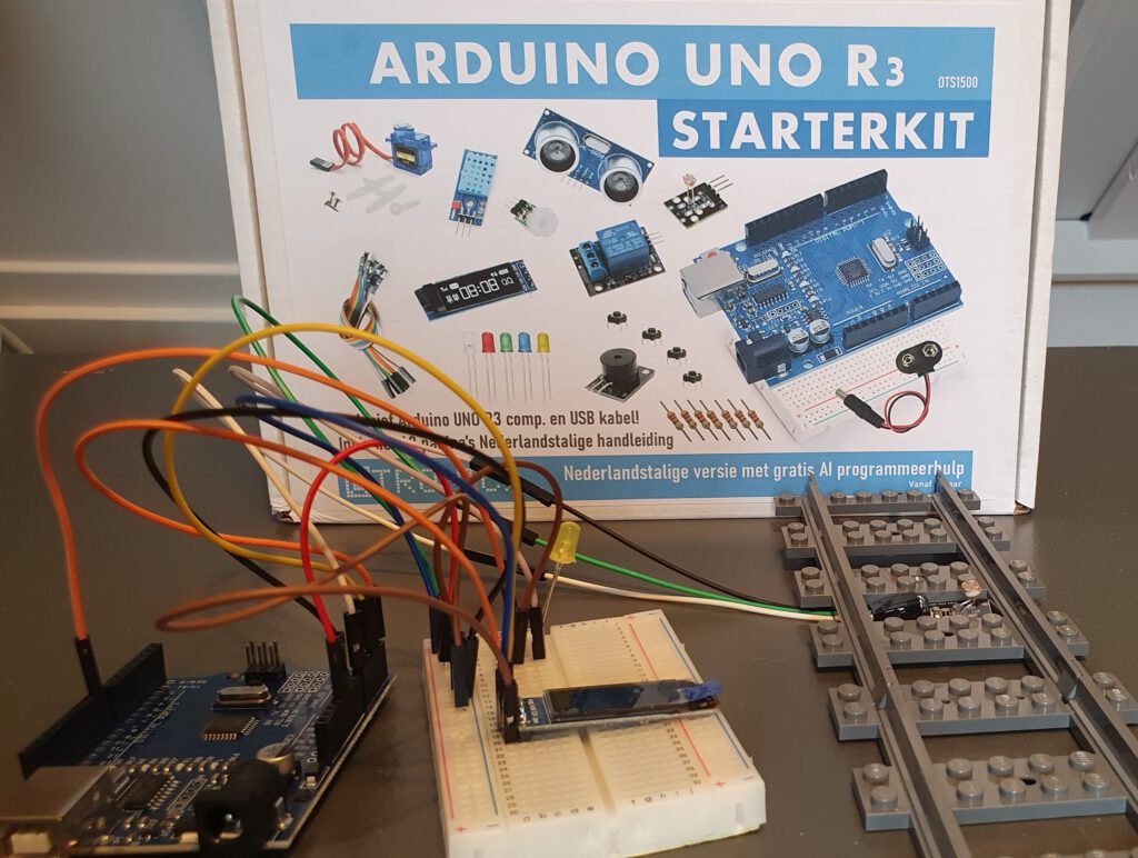 Nu de Arduino code werkt kan ik een proefopstelling met een LEGO trein maken.