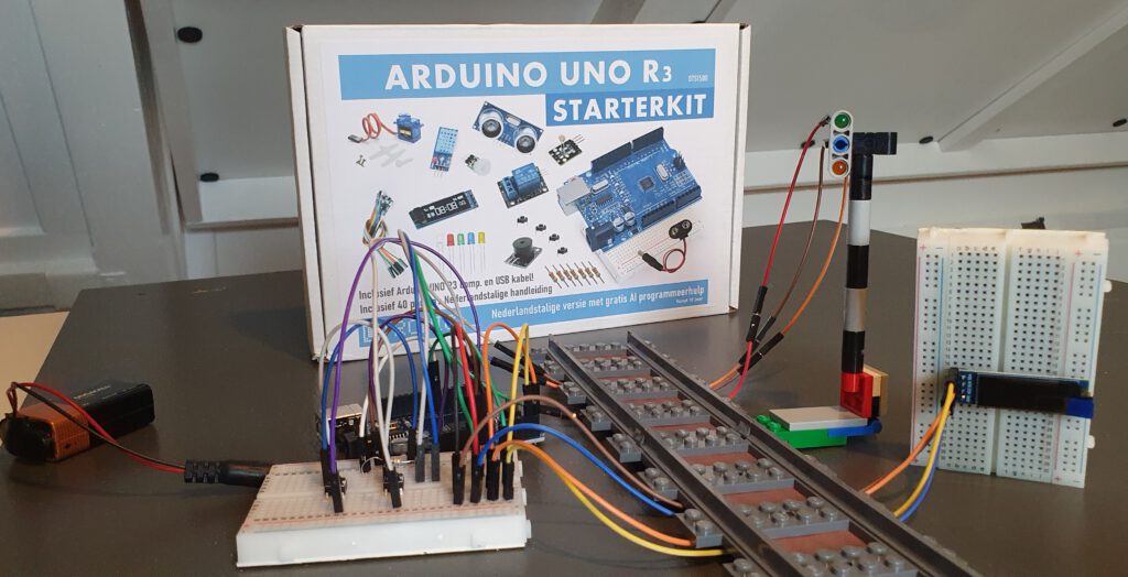 Nu de Arduino code werkt kan ik een proefopstelling van de LEGO seinpaal maken.