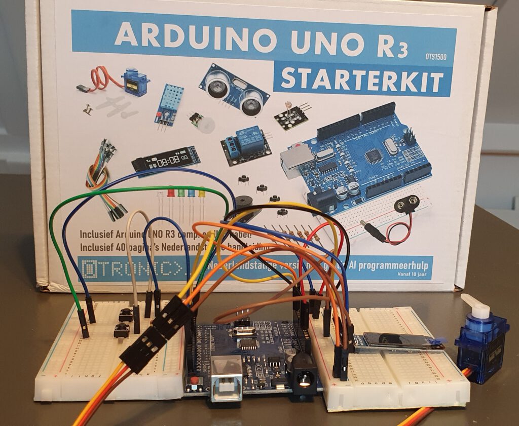 Op deze pagina een uitleg hoe je de servo uit de Arduino starterkit kunt gebruiken.