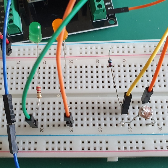 Zo kun je de ‘drempelwaarde’ van de LDR bepalen (bij welke waarde is het voldoende donker). Bij de ESP32 is dat minder of meer dan 2000 en bij de Arduino UNO is dat minder of meer dan 300.