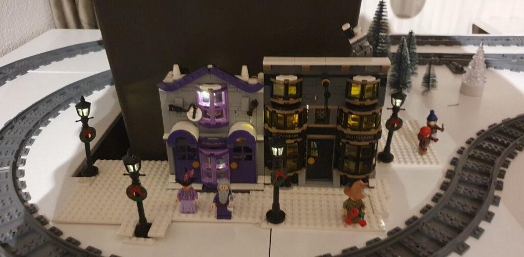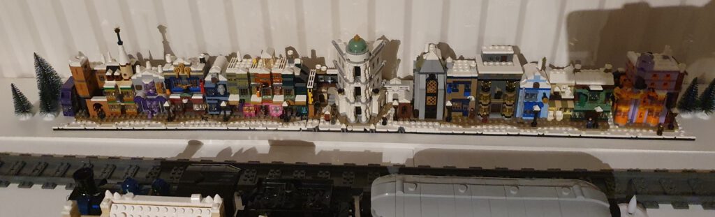 Dit jaar is ‘Wegisweg straat’ én de legoset ‘Olivanders & Madame Mallekins gewaden’ toegevoegd. De Ligusterlaan is aan de ‘simpele’ huisjes toegevoegd.