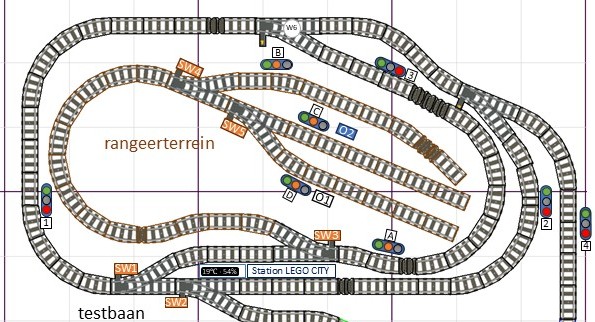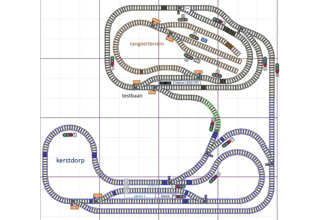Ik ben inmiddels met pensioen en heb daardoor meer tijd om LEGO te bouwen. De werkkamer is omgebouwd tot mijn LEGO domein. Om mijn ontwerpen te kunnen testen heb ik een testbaan gemaakt. Daarop test ik de elektrische wissels, elektrische trein ontkoppeling en de trein automatisering.