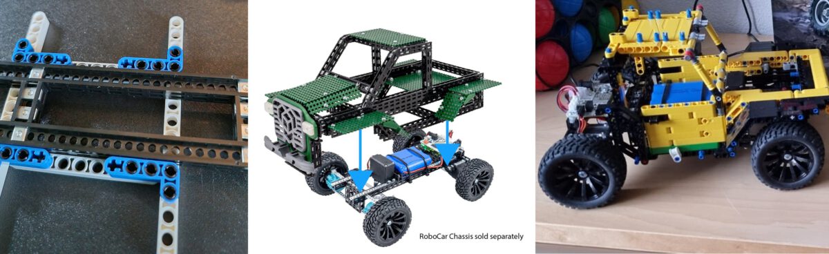 Je ziet dat zowel de wielbasis en breedte van de RoboCar aanmerkelijk groter zijn. Ook de wieldiameter van de RoboCar is met 7 cm aanmerkelijk groter is dan die van de LEGO JEEP. Toch denkt Willem dat het met wat aanpassingen moet kunnen lukken.