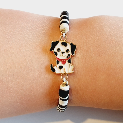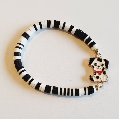 Armband zwart-wit kleurig met hondje als hanger.